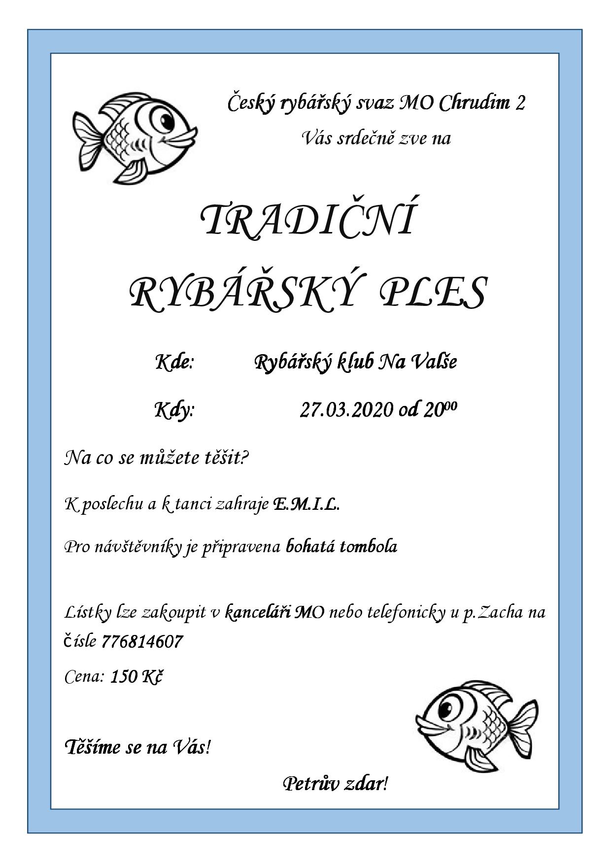 Rybářský ples – 27. března v RK Valcha