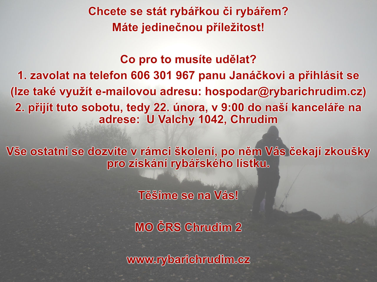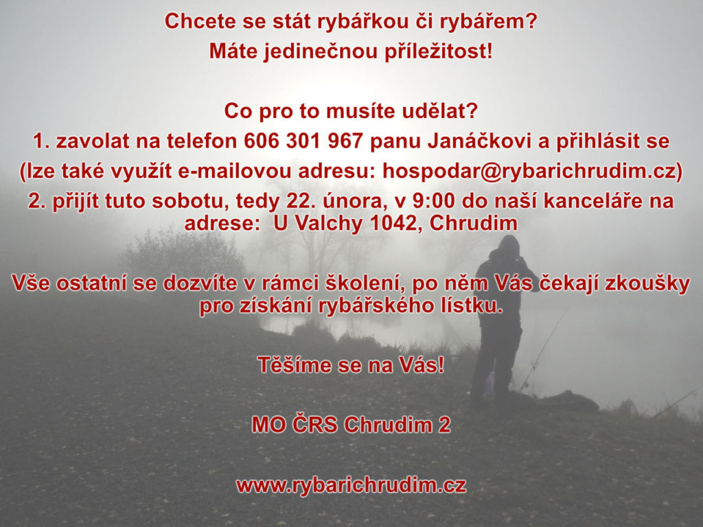 Letošní členská schůze se uskuteční v sobotu 14. března v Rybářském klubu Valcha (je součástí naší administrativní budovy). Začátek byl stanoven na 9:00 hodin.